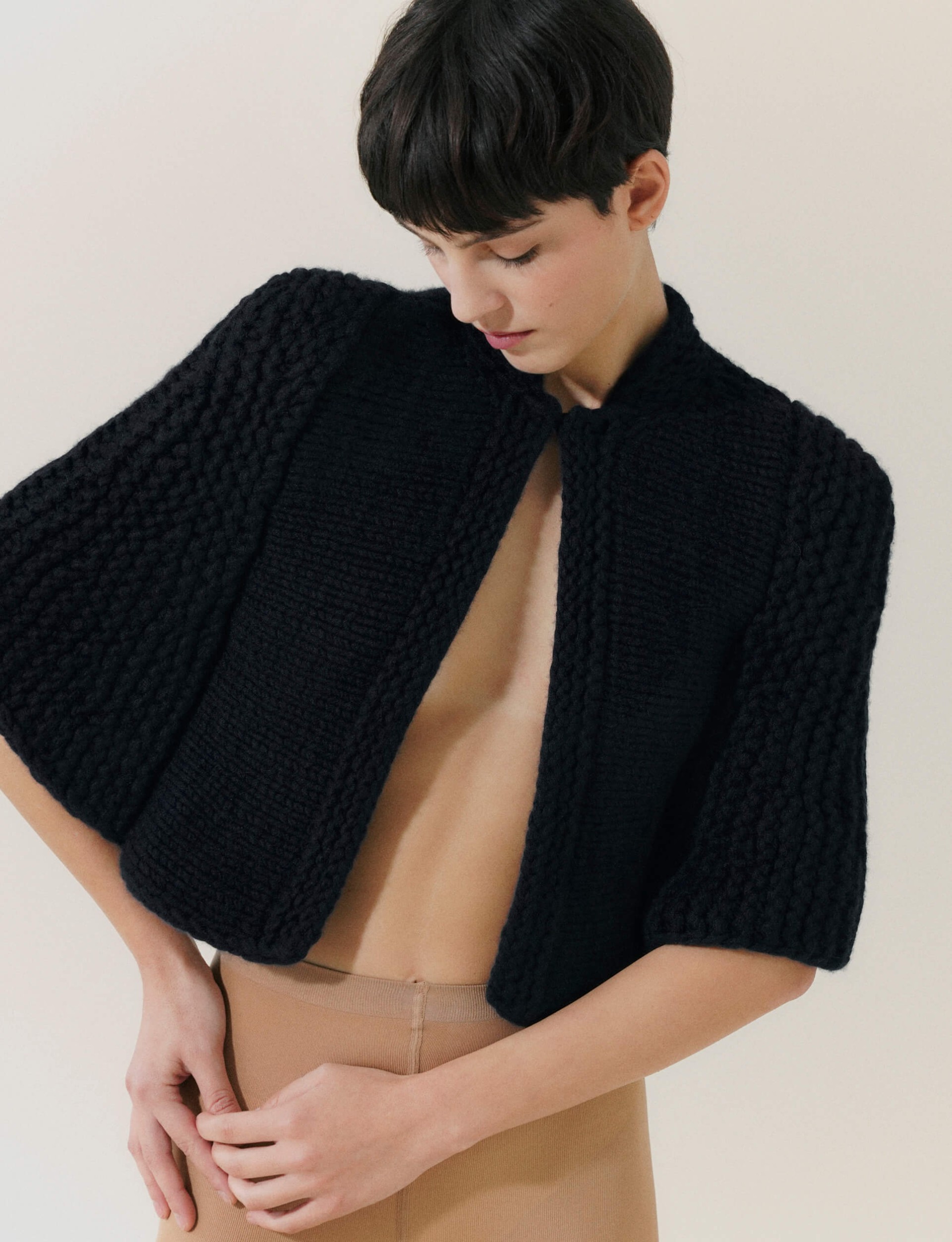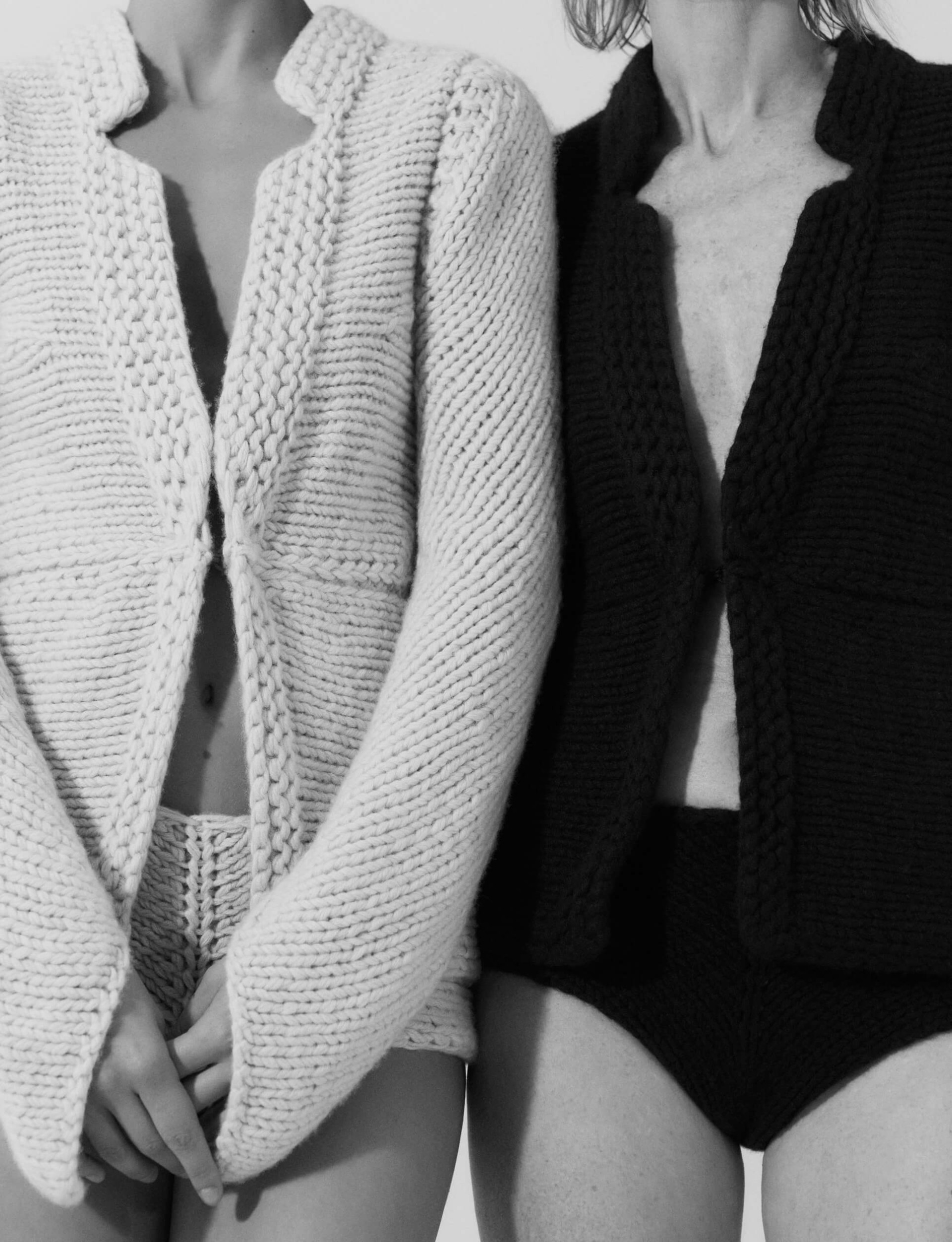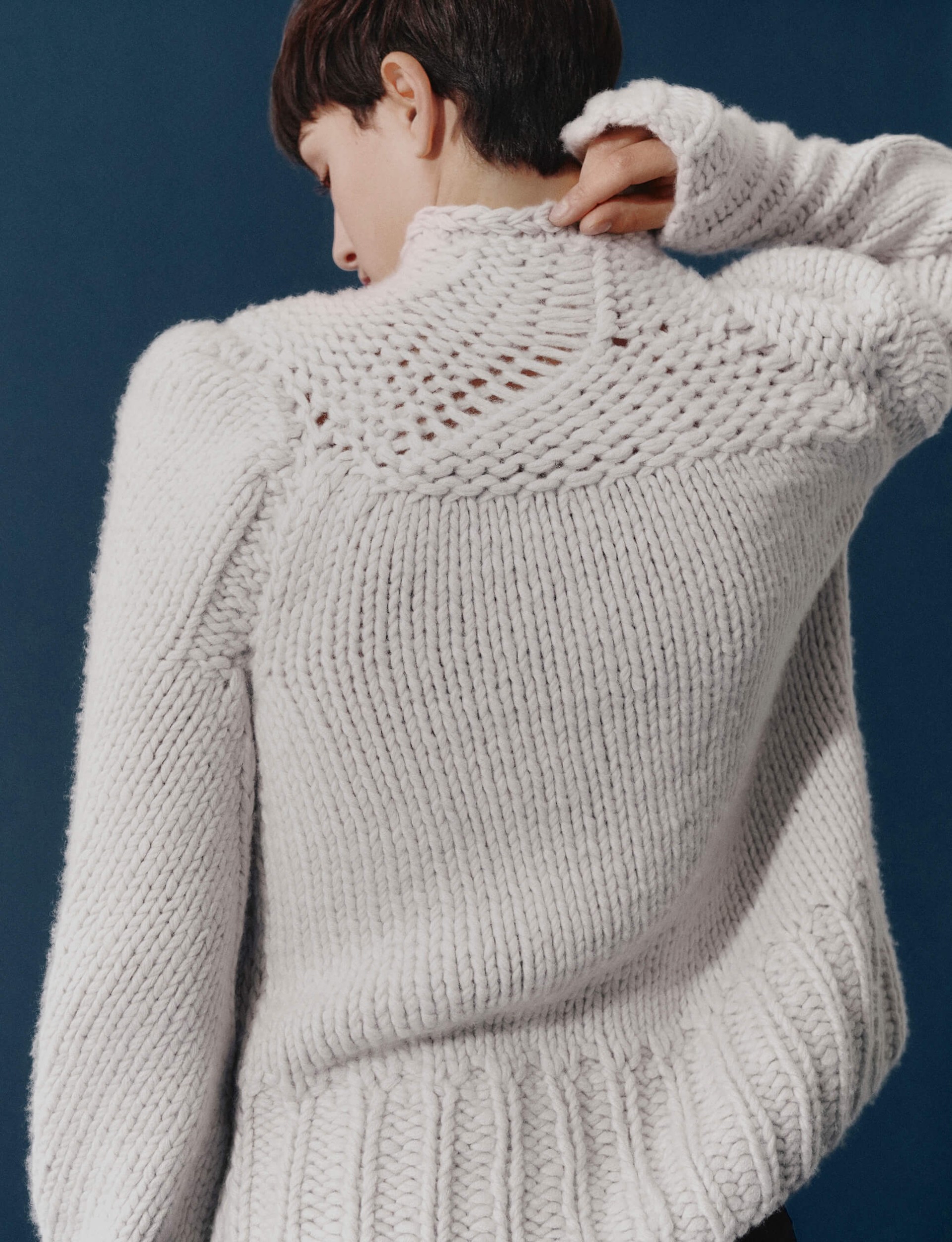 PUGNAT: supersoft, hand-knitted cashmere envelops a woman’s body, embracing her spirit. Structural design punctuates her vigor. Sensuality bonded with strength. Finely-meshed machine-knitwear and sculptural hand-knit garments – two opposing halves reinforce each other.